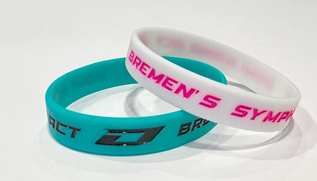 ライブだけでなく普段使いにもお使いいただけるおしゃれなエメラルドグリーンに蓄光ホワイトの2色セット。耐久性に優れたシリコン素材で作られたバンドです。